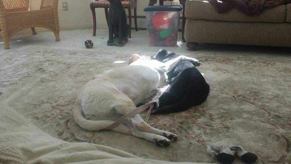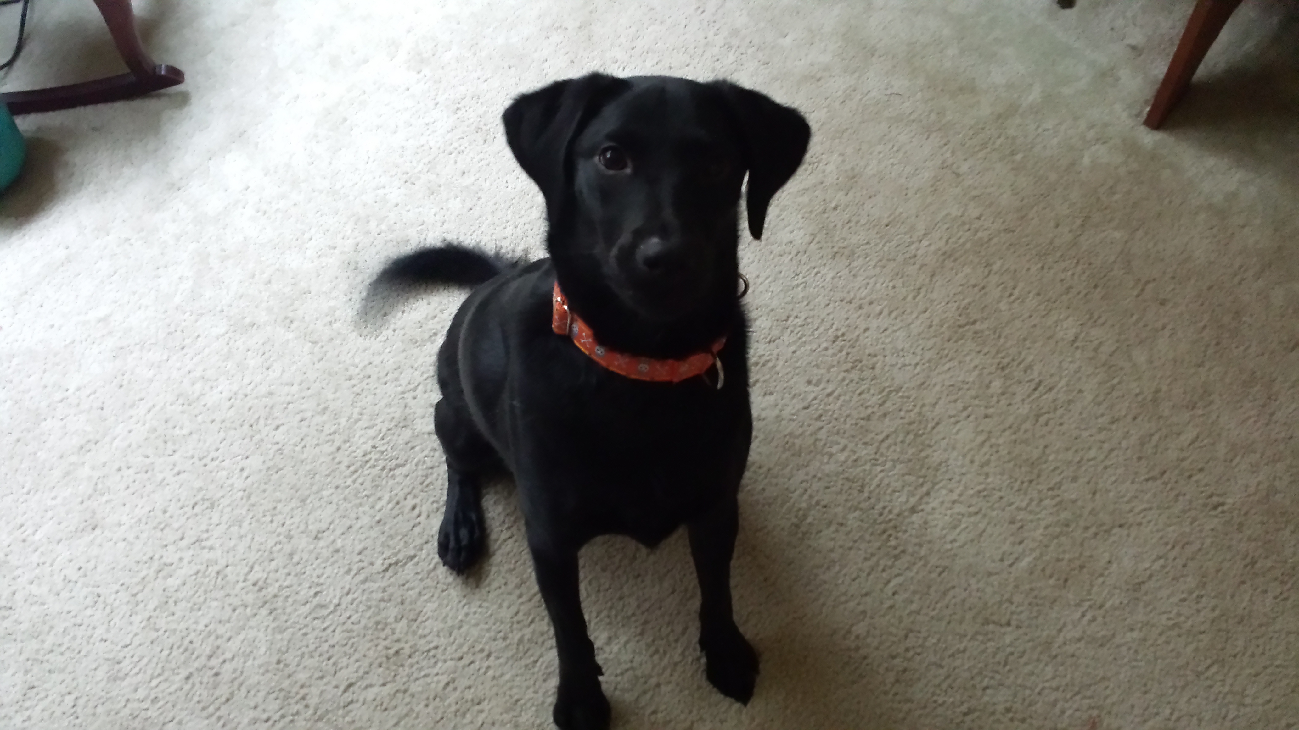 Maddox Lawrence Champion was born November 2014. Maddox came into our lives in Janurary 26, 2015 from Labs4Rescue and has been a perfect fit. Maddox and Saxon have lots of things in common, they both came from Lousiana, a high killzone, the same foster. Maddox is all black with a white speck on his left paw. This white spot did not appear until he arrived home. He must be Saxon approved!